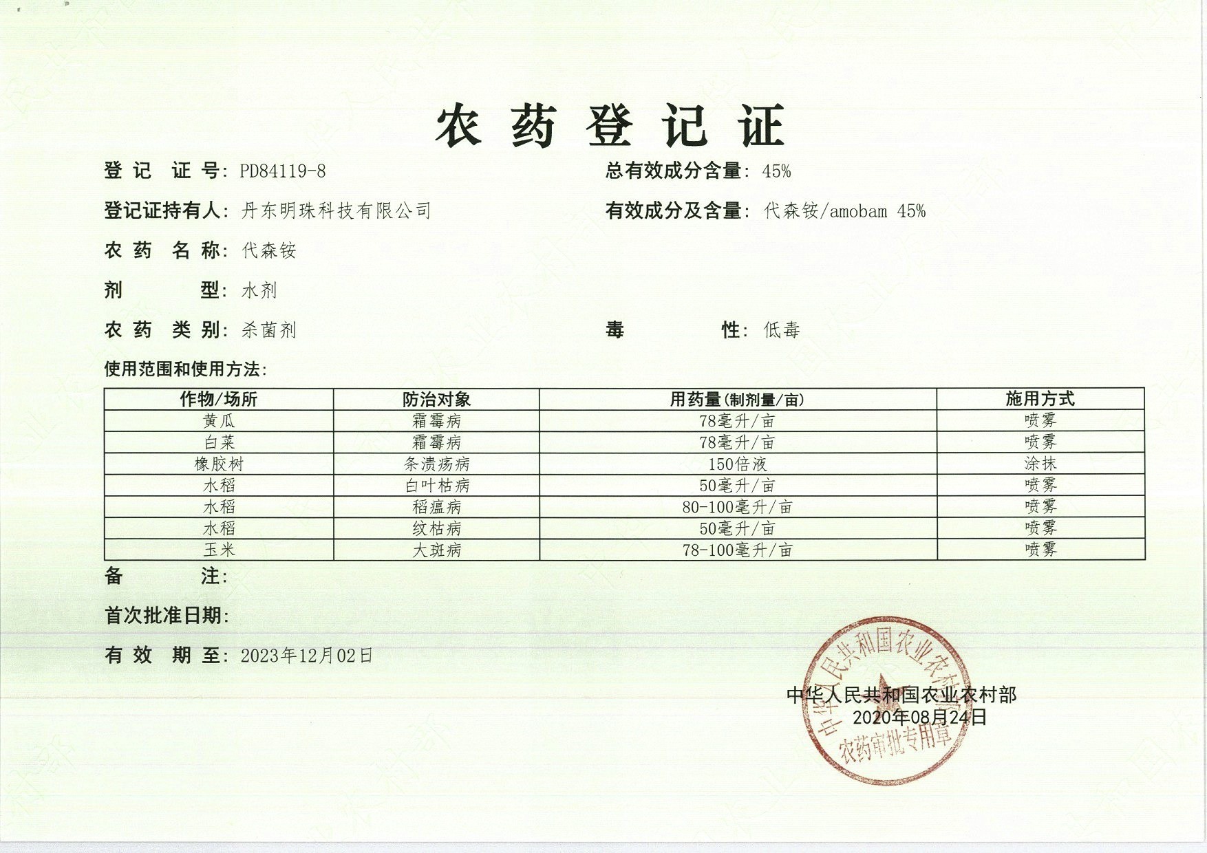 農(nóng)藥登記證